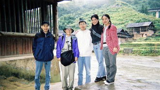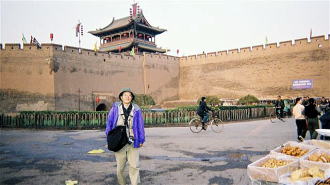 | 三江(左) 竜勝から三江の1泊2日の観光は,広州の「ホウ」さん達とシンセンの「ソン」さん達と行動を共にしました。「ホウ」さんは東京の日本語学校に入学した経歴があり日本語が達者でした。 平遥(右) 平遥は明・清時代に建造された城壁に囲まれた中国古代都市の原型を保つ旧い街です。世界遺産に指定されました。西門の前で記念写真。 |
