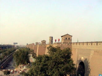 | 三江(左) 三江はトン族の街です。見所は程陽風雨橋のほかに馬胖鼓楼があります。一番大きくて美しい木造の鼓楼です。いずれも釘を一本も使わない建造物です。トン族は高度な大工の技術を持っています。 平遥(右) 城壁はほぼ正方形で周囲の長さは約6.2Kmです。 |