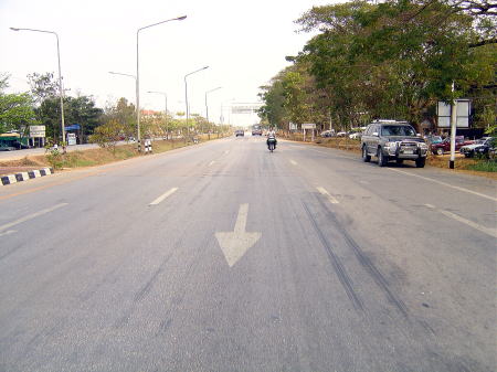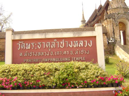 | 1号線を走って、ワット・プラ・タート・ランパーン・ルアンへ | 山門入口の看板 |