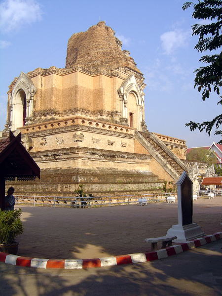 | 旧市街の中心部にあるワット・チェディ・ルアン。ここの仏塔は高さ86mあったが、1545年の地震で上部が崩壊したと言われる。 | |