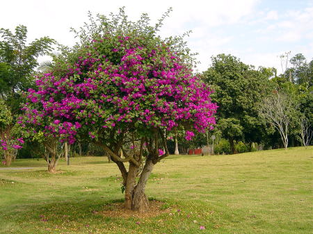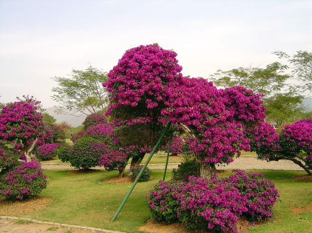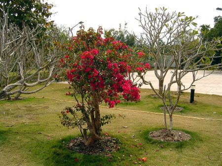 | 景洪市内にある西双版納熱帯花卉園の入口 | 彩るブーゲンビリア |