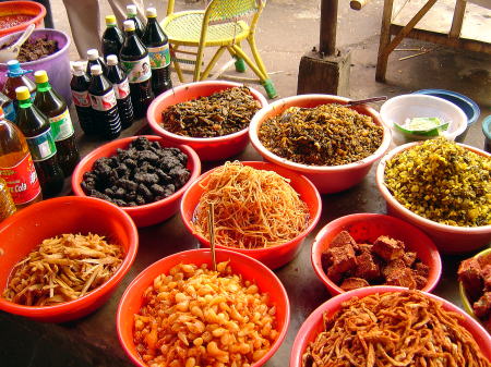 | ここからガンランバの市場。 | 総菜? 漬け物? |