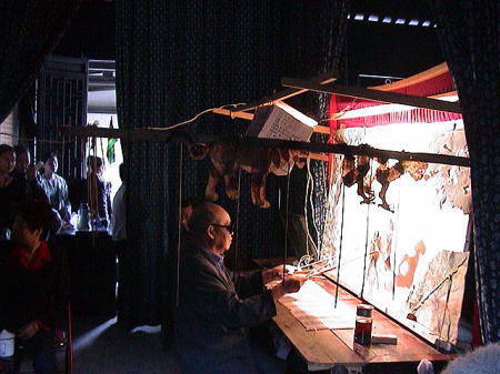 | 水郷烏鎮 風情区内に影絵劇場があり上演されておりました。 影絵を見たり舞台裏を覗いたり。 一人で人形などの全ての道具を操る人形師の腕はスゴカッタです。 |