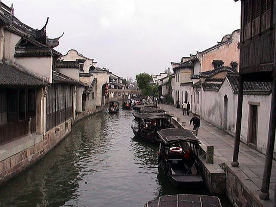 | 水郷西塘 西塘は烏鎮よりも観光地化が進んでいないので気に入りました。 漁師の部落がありました。船は漁船です。 |