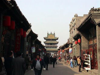 | 平遥(左) 城内には民家や商店街があります。昔からのメインストリートの南大街です。 平遥(右) 平遥は中国各地との交易で栄えた都市でした。明・清時代の民家や豪華な造りの商家が原型を保って残っています。いずれも四合院造りです。 |