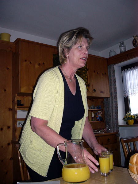 | 宿の女将 到着の翌日だけここで朝食を摂る | |