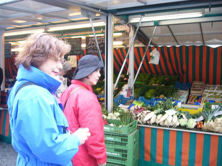 | ショッピング風景 | パン、チーズハムなどの屋台が並ぶ |