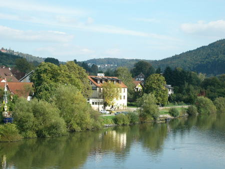 zum Schwanen(白鳥の館)」へ大分前から訪ねたいと思っていたが、なかなか実現できなかった。 街から25分、ホテルのあるネッカー川沿いのクライン・ゲミュンドの町は、とても静かな美しいところだった。 27年も前に仕事で訪れた時、ハイデルベルグ城のテラスからネッカー川、「哲学の道」を撮った自慢の写真が今でも我が家に飾られている。 今回はぜひ、対岸の「哲学の道」を歩き、お城を眺めたいと思っていた。忙しい彼女の適切なアドバイスと、用意された地図を片手に、2日間、実によく歩き回った。 また、滞在中、良いお天気は望めず、効率よく歩けるケルン観光を勧められ、最後の日はICEで2時間、思いがけない遠征をした。 |