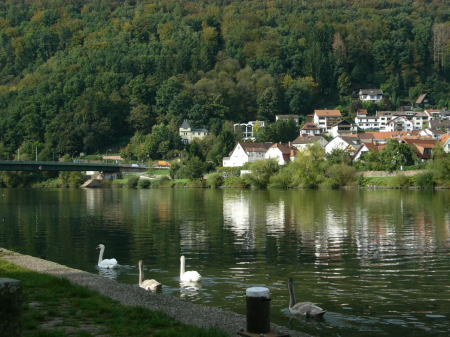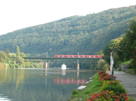 | 白鳥が遊ぶネッカー川 | ネッカー川を渡る電車 |