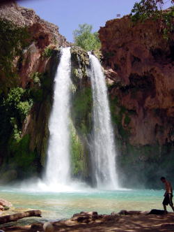 | ハバスパイ ハバスパイへはヘリで日帰りツアーを楽しみました。朝、トウシャンのヘリポートを出発すると、夕方迎えに来てくれる仕掛けです。 写真の左がハバス滝、右がムーニー滝です。水は青く透き通っており、正に別天地に行った感じでした。 ヘリは現地で申し込みましたが、日本からの予約もインターネットで可能との事です。 |