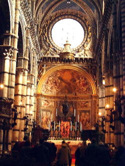 | シエナで ゴシック建築の傑作、大聖堂ドゥオモの全景とその内部 |