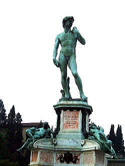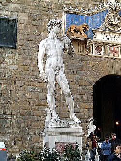 | フィレンツェで:2つのダビデ像 右:ミケランジェロ広場 左:シニョーリア広場 |