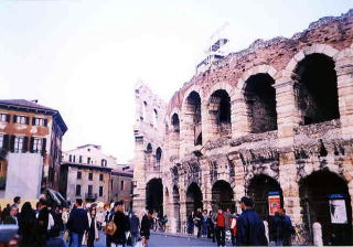 これは古代の円形劇場。 今も現役で野外オペラが上演される。 |