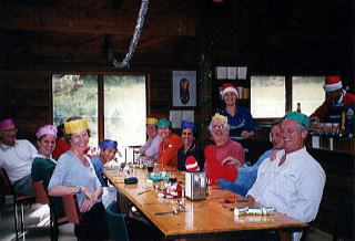 | マッケラーロッジでクリスマス(その2) 夕食後、皆でゲームを楽しむ。参加者14名(日本人2名)。 |