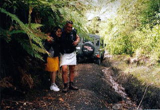 | ロトルアで「世界一のガイド」の認定書を持つマオリ、ロジャーの一日ツアーに参加した。お客はこのインドの美人ファラと私の二人。四輪駆動で野を超え山を超え、湖に入り川を亘る。ロトルアの火山活動の跡を展望し、ブッシュトレックあり温泉あり。 一日中笑いと驚きの連続。ついに私はマオリ男性のユーモアに恋をしてしまった。 (Rotorua、Tekiri Trek、8:45-18:30 ) |