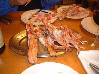 「シガーラスというテナガエビ」 LUGOから直通バスで1時間の海に面した街、ア・コルーニャのBARで食べた「シガーラスの鉄板焼き」。25cm位の大きさで今回の旅行中最高のご馳走!!!これを一人4匹ずつ食らう。もう天国! |