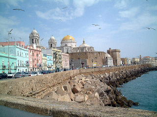 スペイン1ヶ月の旅 昨年の12月に25人の会員他をエスコートしてスペインに行きましたが、私の不手際と不慣れのため参加された皆さんには大変ご迷惑をお掛けしました。その雪辱戦と言うわけでもないのですが、今回は私を含めて4名という少人数。タクシー1台に収まる人数です。4人の人間は車内に収まるが、4個のトランク+αの荷物は1台のタクシーに収まるのか?空港のタクシー乗り場のオトッツァンにその事を言うと、「トランク4個乗せられる車!」と大声で客待ちのタクシーの列に呼びかけ、手を挙げた1台に無事乗り込みました。スペインのタクシーは日本の様なLPG車ではなくディーゼルなのでトランクは空いておりおまけに、そのチェコ製の車(シュコダ)のトランクは巨大で、我らの4個のトランクを飲み込み無事今回の旅は始まりました。 取り敢えずの行き先は前から行ってみたいとねらっていた「カディス」。泊まる所も何をするかも全て未定という気楽な旅です。全ての行動計画が予め決まっている方が「気楽」と考える人もおいででしょうが、私の場合はその逆で、どこで何が起こるか分からない、という漠然とした期待感の方が大きく、行ってしまえば、何とかなるさ! と気軽に出発しました。