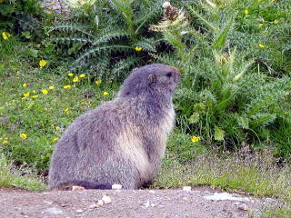 海抜2,400m付近のスピールボーデンと言うケーブルの中間点にはマーモットが数多くいます。ここでは越冬用に人参やビスケットをあげて下さいとえさを与えることが許されています。 スイスより5日 |