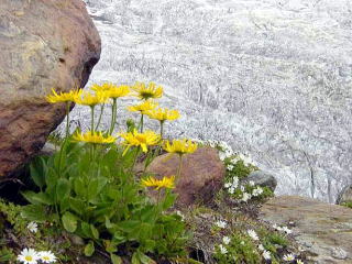 本日(7日)は約5時間をかけて、サース谷をはさんで対面の山の中腹をトレッキングしました。全コースお花畑と言ってもよく、そこで摂った花の写真は久代個人のHPに収める予定です。