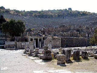 ベルガマのトルコ軍施設の側にあるアスクレピオン遺跡です。 これは、神の声による心理治療の場でした。 ローマ時代の医療センターの跡といった所で患者に水のせせらぎを聞かせたり医師が伝声管でささやき乍ら患者の心を鎮めていたものと思われました。 |