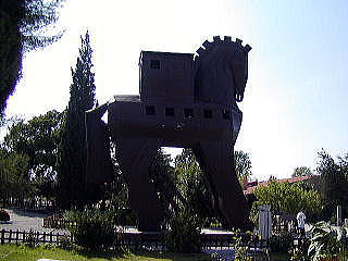 | トロイ遺跡(ホメロスが抒情詩「イーリアス」で語られたトロイ戦争の舞台に成った所、遺跡は長年の攻防を繰り返し地層が現在7つに成っていました。 入口はホメロスの巨大木馬が迎えてくれました。 |