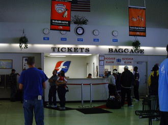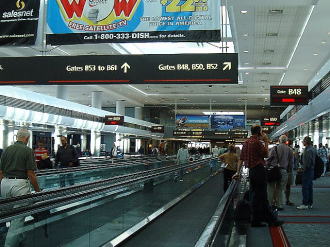 これはデンバー空港のシャトル・トレ-ンと、歩く歩道。デンバーはとても大きな空港でした。