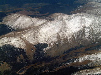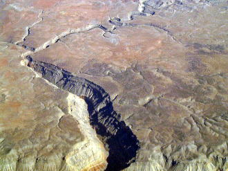 ジョージア・オキーフの世界から最後の目的地、ラスベガスに飛びました。 機上から見た景色 左: ロッキーキー山脈を越えて 右: 浸食作用で出来た渓谷。 |