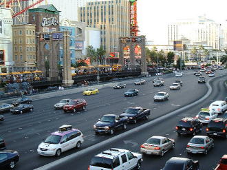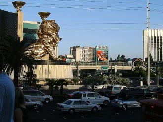 左: 一番賑やかなストリップ通り 右: 映画会社MGMのシンボル、 |