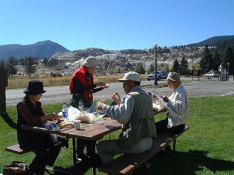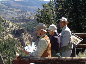 | ソルトレイク・シティからレンタカーで出発し、ウエスト・イエローストンまで約390マイル。 4人で交替で運転しました。道は広く、大草原、大牧場、森林地帯を眺めながら、国土の広さや雄大さを十分味わうことができました。 |