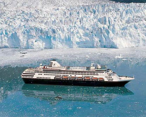 08年9月20日8時30分、我がドーン・プリンセス号は トレーシー・アーム・フィヨルドに入って行きました。ここから 待ちに待った1時間半のドラマが始まります。早めに朝食を済ま した乗客は防寒具に身を固め、上部甲板に引き召し合うように 並びます。このクルーズのクライマックスと言えるでしょう。