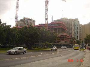| 従来は目立つ事もなかったルワーズ通りが再開発され、ワイキキ・ビーチ・ウォークとして登場しました。現在建設中のトランプ・インターナショナル・ホテルはコンドミニアム形式の建物ですが、発売して7時間で完売したとか。オイルマネーの参入が大きかったと聞いています。ほかにも今話題のタイムシェアー方式で販売しているホテルもあります。 一方、日本から来る観光客の財布は固く、客数を減っていると言われています。ワイキキは日本の景気を知る上のバロメーターだそうで、日本の景気の状況は日本に居るよりもワイキキの方がよく判ると言う話も耳にしました。 これから出て来る新築のコンドミニアムには手が出せない。大手のホテルの宿泊料は高水準で推移する一方で、一部のホテル業者には空き部屋の穴埋めの為に、第2市場で値段を下げてでも、稼働率を高めたいとする現実があると言えます。この状況は思った以上に深刻です。 そのような環境の中で、利用する立場の我々はどうしたらよいのでしょうか。まずは現地に来られて、実情を把握された上で信用の出来る所と相談して決める事が肝要と思います。 |