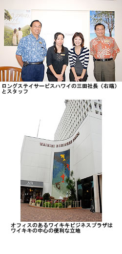 | ライフ&カルチャー:シニアから親子留学まで幅広い層が実践 〜ロングステイの魅力と需要にひそむハワイ旅行の新たな可能性〜 海外旅行の好きな人はハワイにはじまり、ハワイに終わるといわれることも多い。観光で4泊6日、5泊7日と駆け足で回るハワイではなく、1ヶ月以上滞在したいみたいと願い、それをロングステイという形で実践している人の多くが、ハワイ旅行のリピーターによって占められている。ロングステイ財団のアンケート調査「ロングステイ調査統計2008」によると、ロングステイの希望期間は1ヶ月から3ヶ月未満が45%と半数近くを占める一方で、6ヶ月から1年は8%程度であり、より手軽なロングステイが主流になりつつあるのは確か。将来の長期滞在を見込んだ視察・体験旅行をはじめ、趣味や稽古の延長としてのハワイ暮らしなど、ロングステイの潜在需要に結びつくヒントも少なくないはずだ。ワイキキ周辺に1ヶ月から1ヶ月半滞在が主流 地理的に日本からさほど遠くなく、温暖な気候、空気がよく、人々が朗らかといった理由から、ロングステイの滞在先としてハワイを選ぶ日本人が多いという。旅慣れた人がヨーロッパ、アメリカのその他の都市、南アメリカ、アジアと旅行をした後、ハワイでのロングステイを選ぶには、それなりの訳がある。ハワイは白人、日系人、アジア系など多様な人種がともに暮らしている。どの人種もマジョリティではなくマイノリティの集まりといった、アメリカでも独特の州という背景からか、人々はお互いを思いやり、観光客にも優しい。アロハスピリットという言葉をよく耳にする通り、ワイキキのような都会であっても、人の優しさを感じることができるのが魅力であり、ロングステイではそれを実感する場面が多いだろう。ハワイの滞在サポートサービスを24時間体制で提供しているロングステイサービスハワイの社長である三田英郎氏は、「自営業、団塊の世代やシニア層などの退職者や40代から50代の語学留学、親子留学など、幅広い層がロングステイを実践している」と語る。利用者のほとんどがワイキキ周辺のコンドミニアムを希望し、1ヶ月から1ヶ月半ほど滞在するケースが多い。高級志向の人たちであれば月額4000ドルから1万ドルのコンドミニアムを利用することが多く、お気に入りのコンドミニアムを指定する人も少なくない。一方、低価格志向の人たちは月額1500から2000ドルで、ワンルーム・タイプのアパートを利用する。高級コンドミニアムとしては、ホクア、ハワイキタワー、ナウルタワー、カハラビーチアパートメントの人気が高く、全般に月額3000ドル前後の滞在先を選ぶ人たちが大半を占めているのが現状だ。 生活のパターンづくりのアドバイスを実施 ハワイは、特にワイキキ周辺などは外国ではあっても、日本人が観光や通常の生活をする分には不便があまりない。しかし、急な病気や事故、銀行や医療など複雑な状況になると、英語のハンディを感じる日本人は多い。ロングステイサービス社はこのような要望に応えることを目的に、2008年8月にオープンした。「日本と同じような気持ちで生活できることを理想に、言葉が壁になっていた様々なことの入り口を開くお手伝いをしている」と三田氏。また、団塊の世代やシニア層の人は、今までがむしゃらに働いてきた人が多く、急にのんびり、ゆっくりといっても、かえってそれがストレスになってしまう傾向も見られる。そうならないために、ボートの好きな人には係留地を探すなど、日本で趣味として親しんでいることをハワイでも体験できるようにしたり、あるいはビジネスについて考えるきっかけづくりをする。毎日をイキイキと過ごせるように、生活のパターンを作っていくなどのアドバイスもしている。 ハワイで、医療、語学学校、携帯電話会社紹介からゴルフ場、レストランの予約まで、あらゆる会員のリクエストに24時間体制で対応するサービスを提供するのは、ロングステイサービスが初めて。月会費は300ドル必要だが、短期滞在者向けに1日15ドルからというサービスもスタート。1日からでも対応するので、長期滞在の下見ツアーはもちろん、将来、ロングステイを考える顧客の旅行のオプショナルとしても利用できるだろう。 ロングステイに欠かせない友人作り 「ロングステイを楽しむ、もうひとつの大きな要素は友人やヨコのつながり」とNPO法人のハワイシニアライフ協会を設立した同協会会長兼代表の坂井諒三氏は話す。同法人は2007年9月に設立、現在会員数は600人を超えており、会員の3割近くは地元の人が占めている。毎週金曜には“シニア・フライデー”と題し、プライベートヨットクラブでのおしゃべり会や、ゴルフで楽しむ会を開催し、友人の輪を広げる機会を提供している。「少し前までは、日本の家を手放して本格的に移住する人が多かったが、これからは、日本とハワイの2つの都市で生活する、2ヶ所居住型が本当の幸せなのかもしれない」と坂井氏