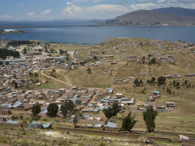 チチカカ湖にはトトラと呼ばれる葦を積み重ねた浮島が40ほどある。 ウロス島もその内の一つ。小学校のある島や住宅団地?の島、サッカーが 出来るように土を盛った小さなコートも。ソーラーシステムが備えられ、 テレビを備えた住居など、素朴な暮らしの中にも、現代の生活様式が取り 入れられていた。